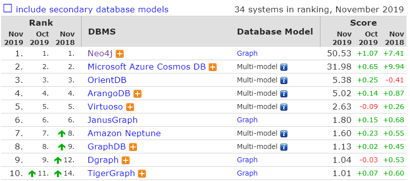 Neo4j에 대해서 들어본지는 꽤 된것 같다. 여전히 1위를 지키고 있는 위엄...